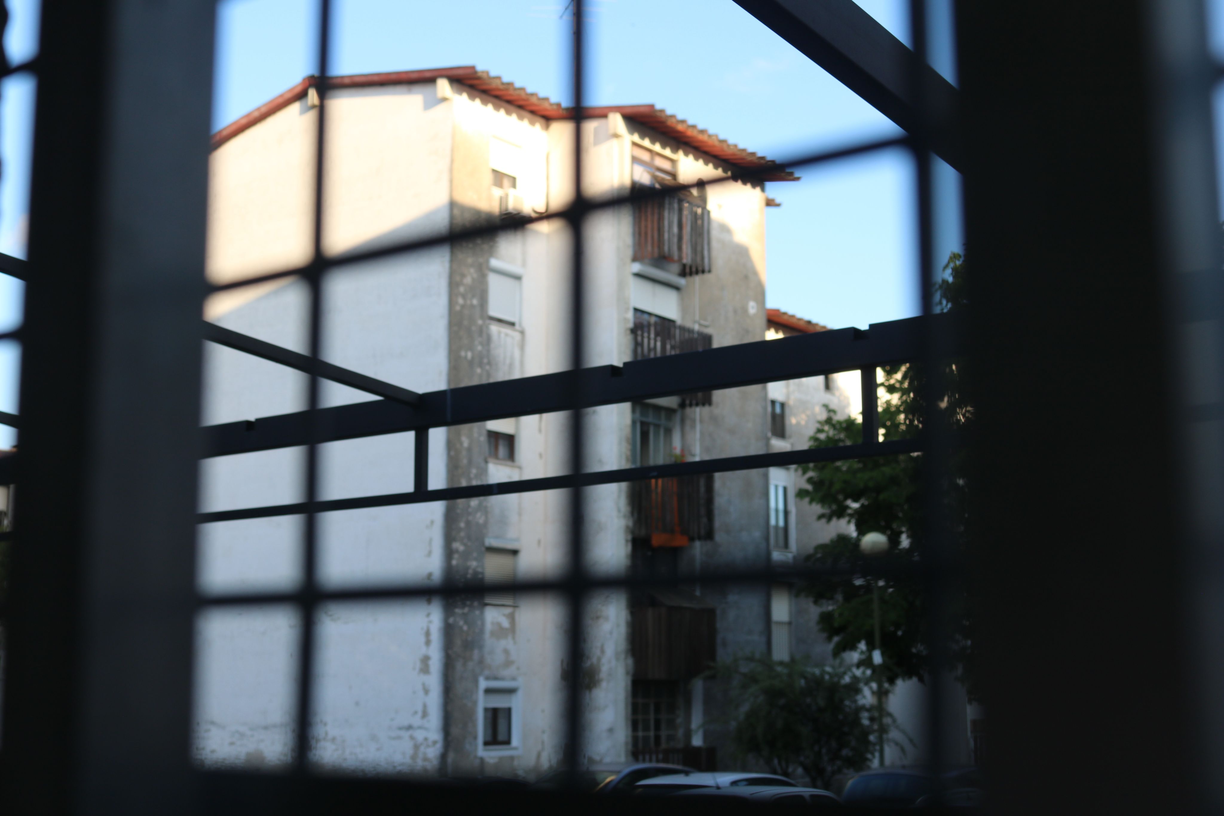 Vista de um bloco das Enguardas pela janela da Associação