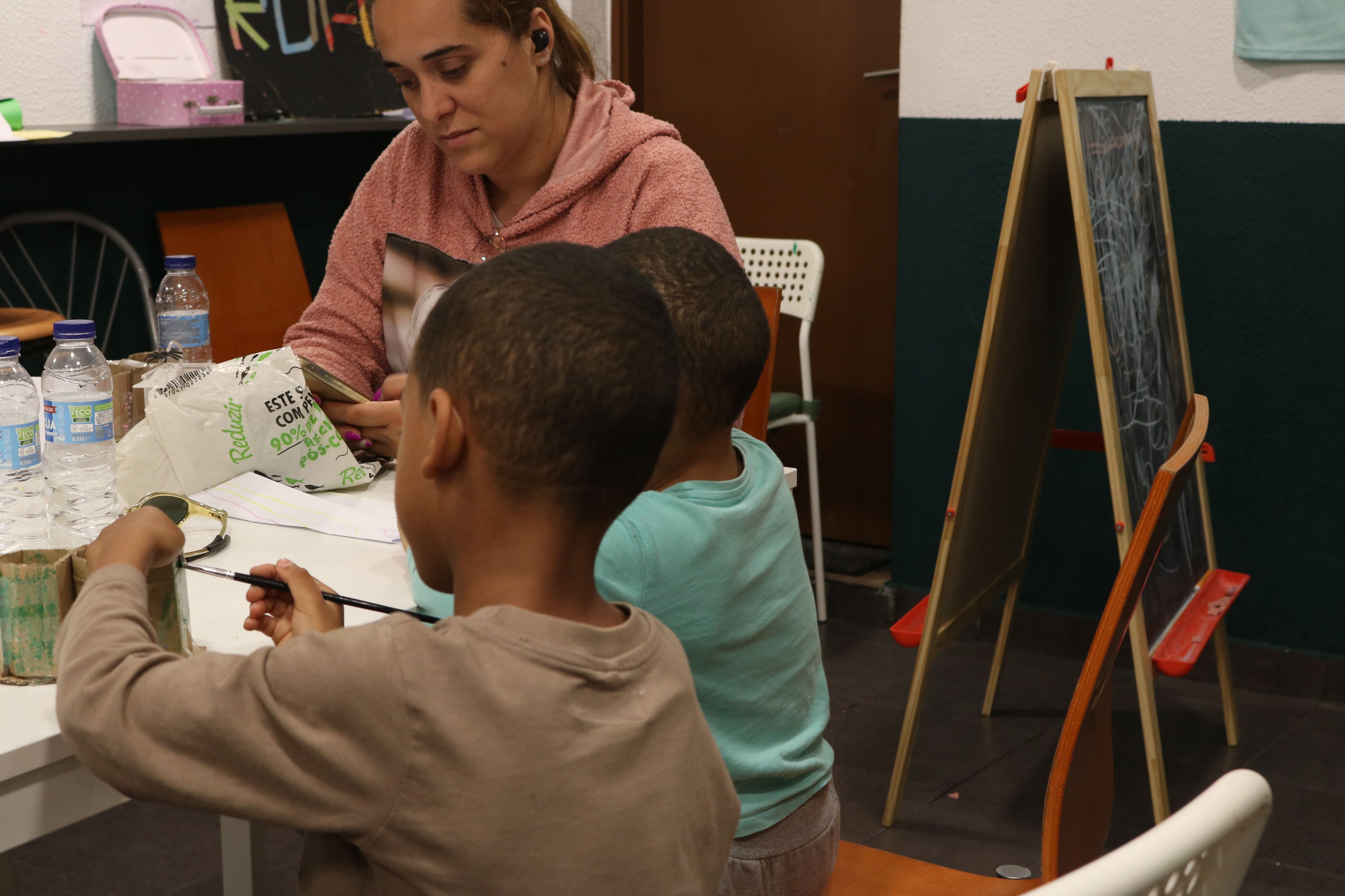 O chão da sala é preto. Na entrada, estão dois sofás castanhos e atrás várias mesas baixas cobertas de lápis coloridos, folhas e desenhos por acabar. Os brinquedos espalhados pelo tapete são sinónimo de lazer e animação. As correrias são imparáveis.