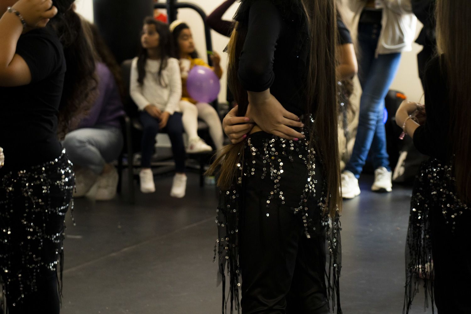 Aplausos e assobios de animação antecipam a performance. Ouvem-se as missangas das saias pretas a balançar. A música é lenta e segue o compasso das mãos e ancas das dançarinas.